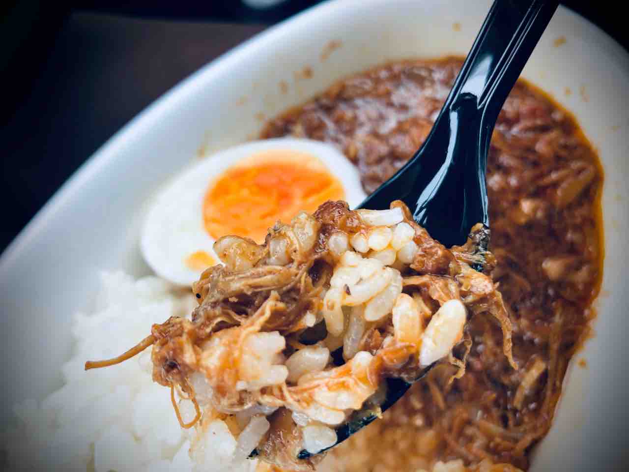 カレー自体はそんなに辛くはなく、多分アイコのトマトジュースが使われている為か甘み酸味がありました。チキンはほろほろで美味しくガシガシ食べ進めます。