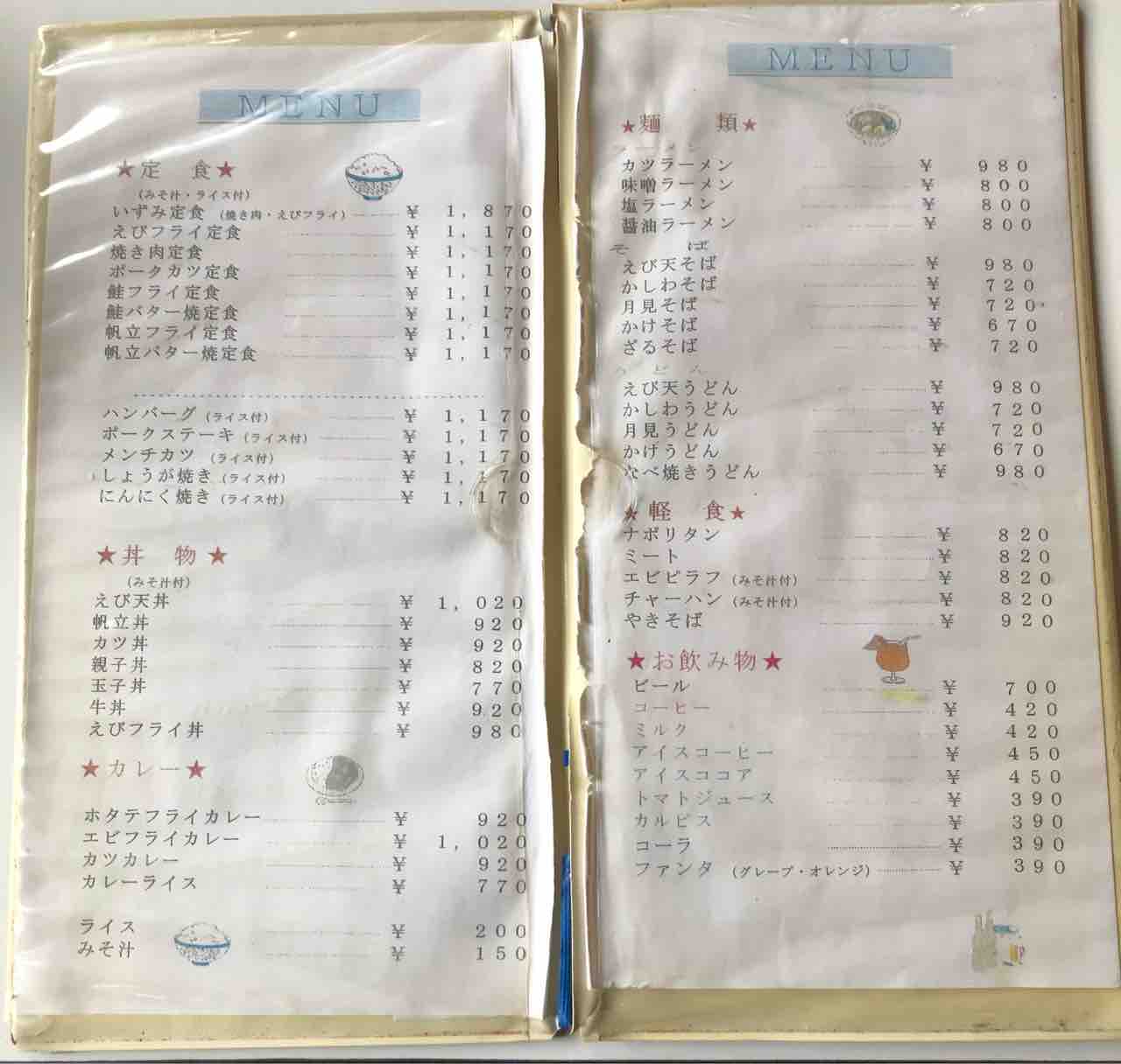 メニュー表。