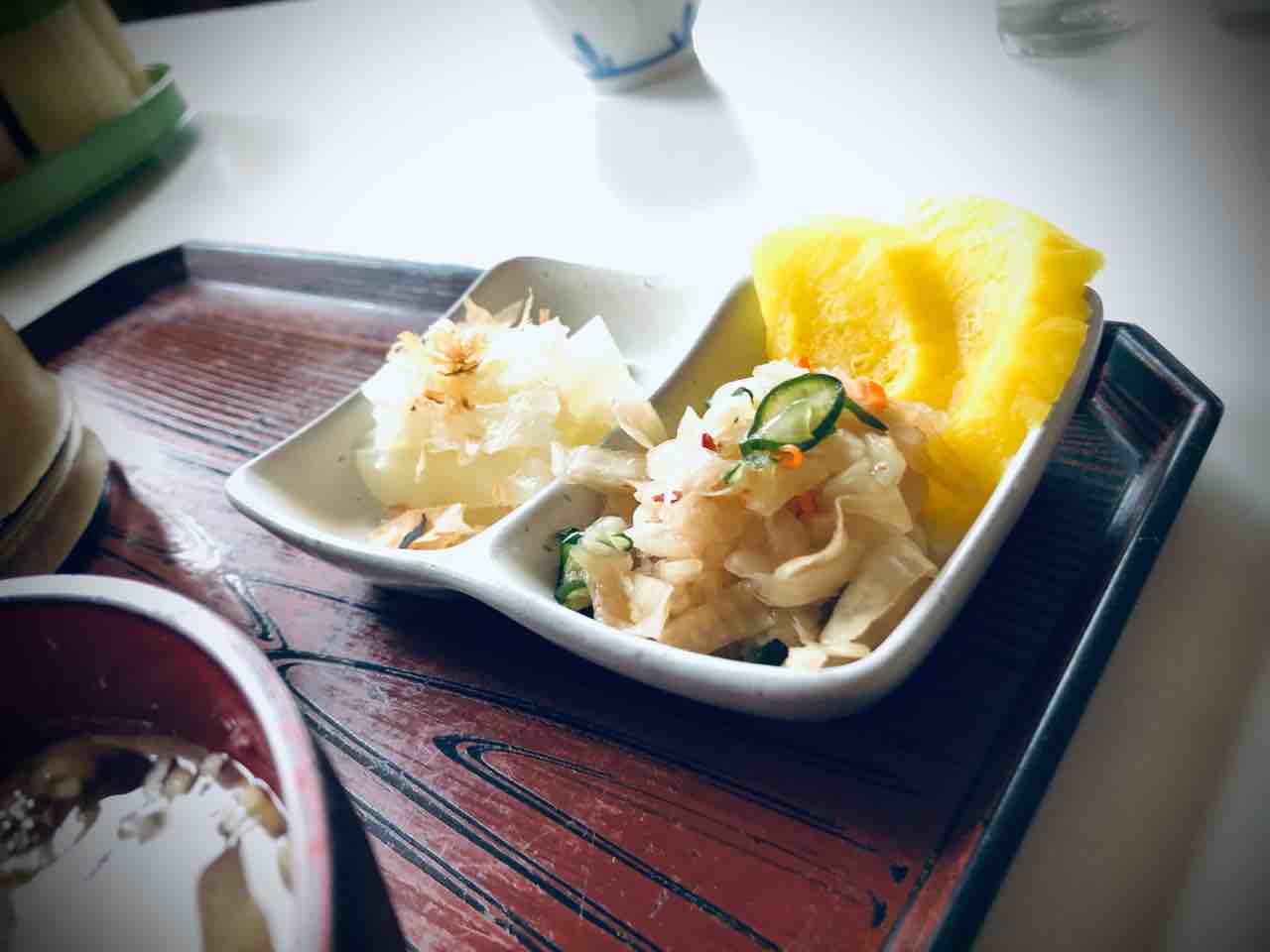 白菜のお浸しと漬物です。