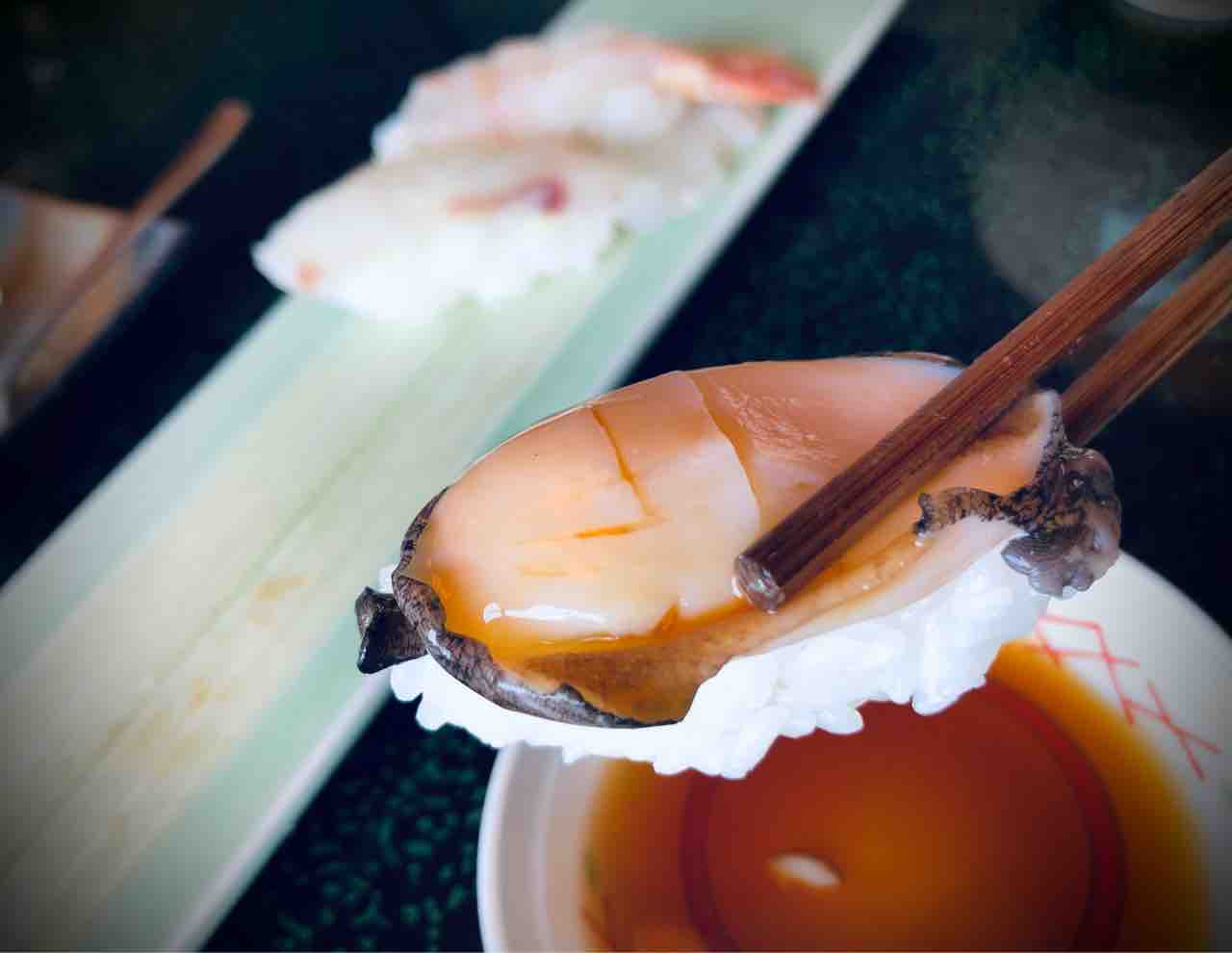 鮑のお刺身も甘くコリコリしてシャリとの相性も良く美味い😆