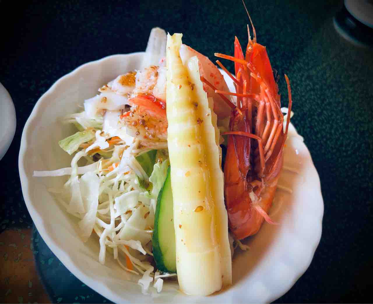今回は筍に海老、カニと言った内容になりますが、都度都度違うサラダが出てくるのも楽しみの一つです。