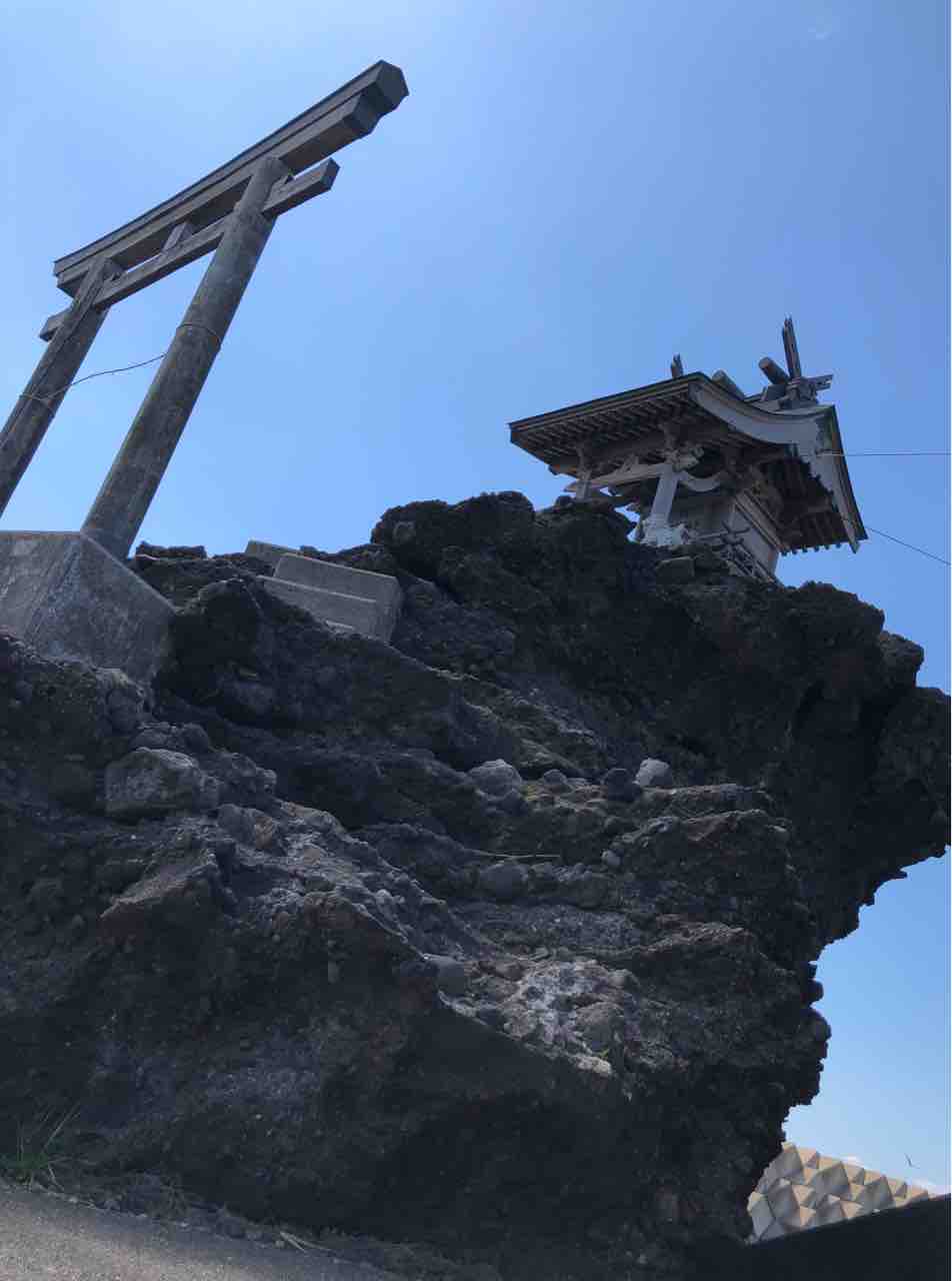 雲の形を成した岩の上に鳥居と神社 思わぬスポットを見つけてしまい 少しテンションがあがりました。