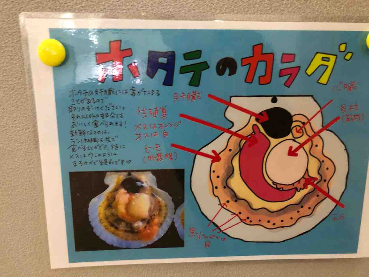 温泉をあとにして ホタテのカラダのPOPが目に入ったのでお勉強しておきましょう。