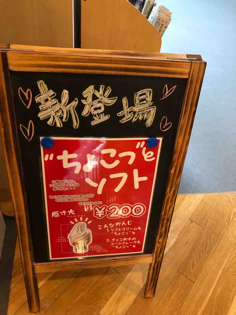 温泉に入ると 身体が火照ります熱いです、冷たいもの欲しくなってしまいますという事で ソフトクリームでもと思いましたが 新登場 ちょこっとソフト (200円税込)の看板を見てしまったのならば頂くしかありません。