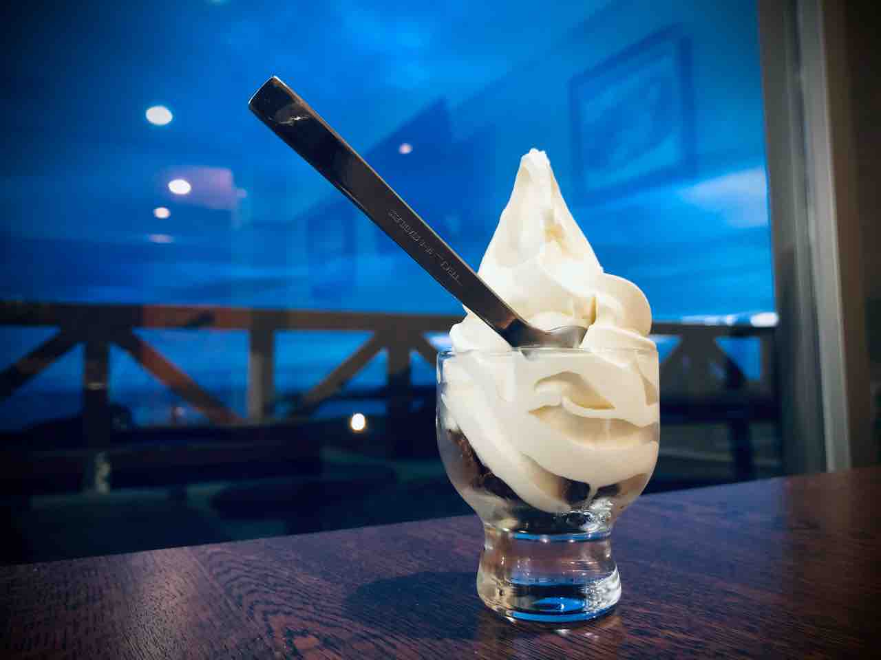 食べてみると ミルク感が強めで結構甘めの粘り気のあるソフトクリームでしたが美味しく頂けます。カップの底にはチョコフレークが敷き詰められており アクセントには良いのかなと思いました。