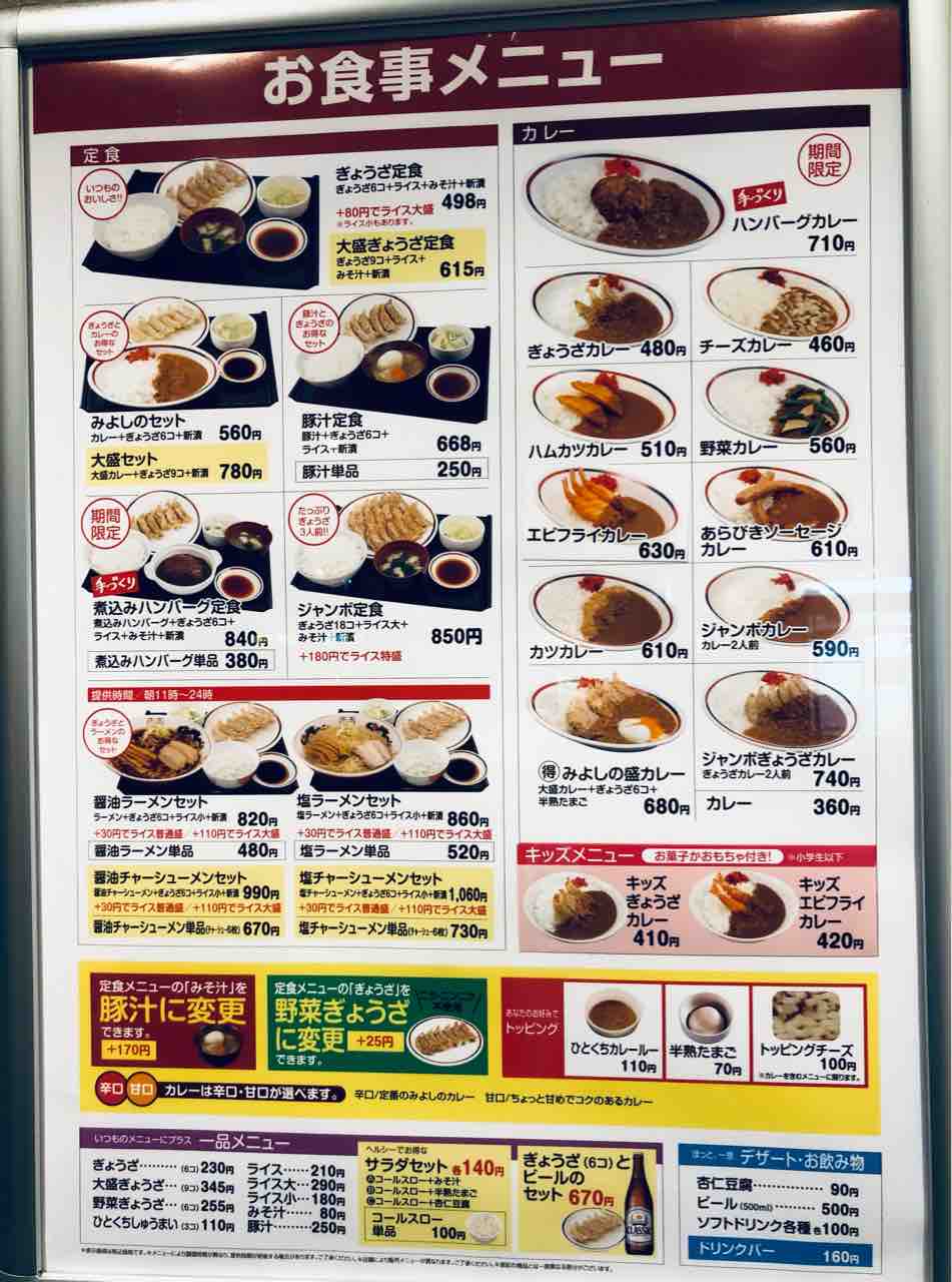 みよしのの餃子は良いです。