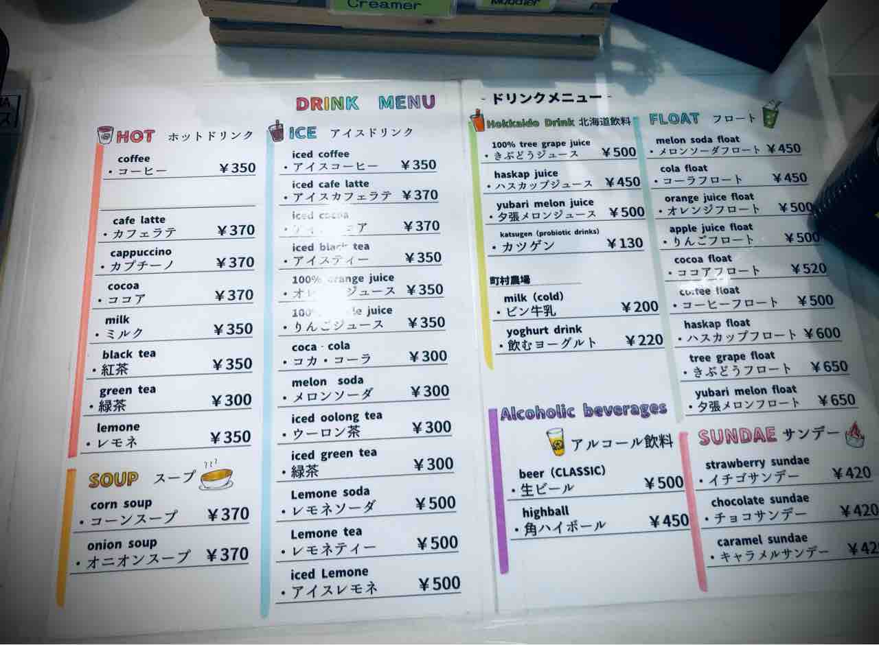 ドリンクメニューです。