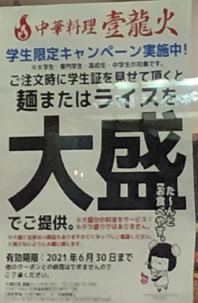 学生は大盛無料