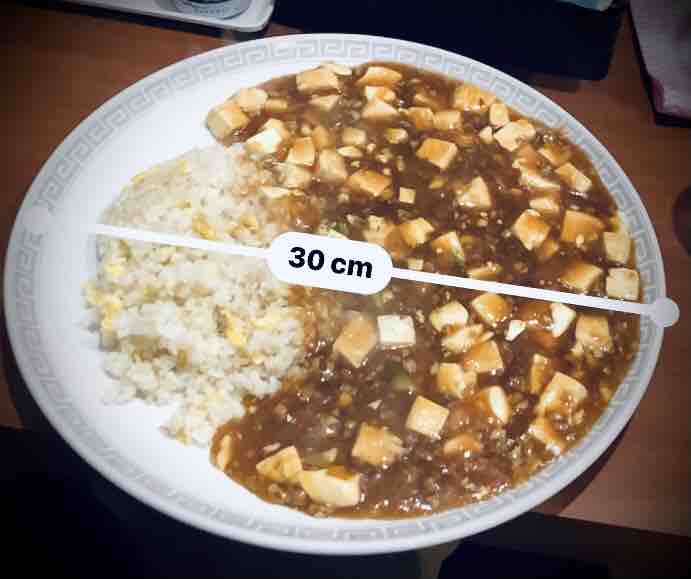 お皿も合い相変わらず大きいので測定をして300mm…ルーティンを済ませたのでこれで心置きなく麻婆チャーハンを頂けます…