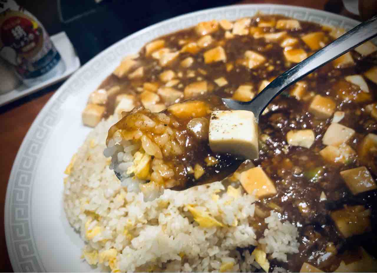 チャーハンの量に対して 麻婆豆腐の量がばり沢山で 見慣れた麻婆チャーハンです。