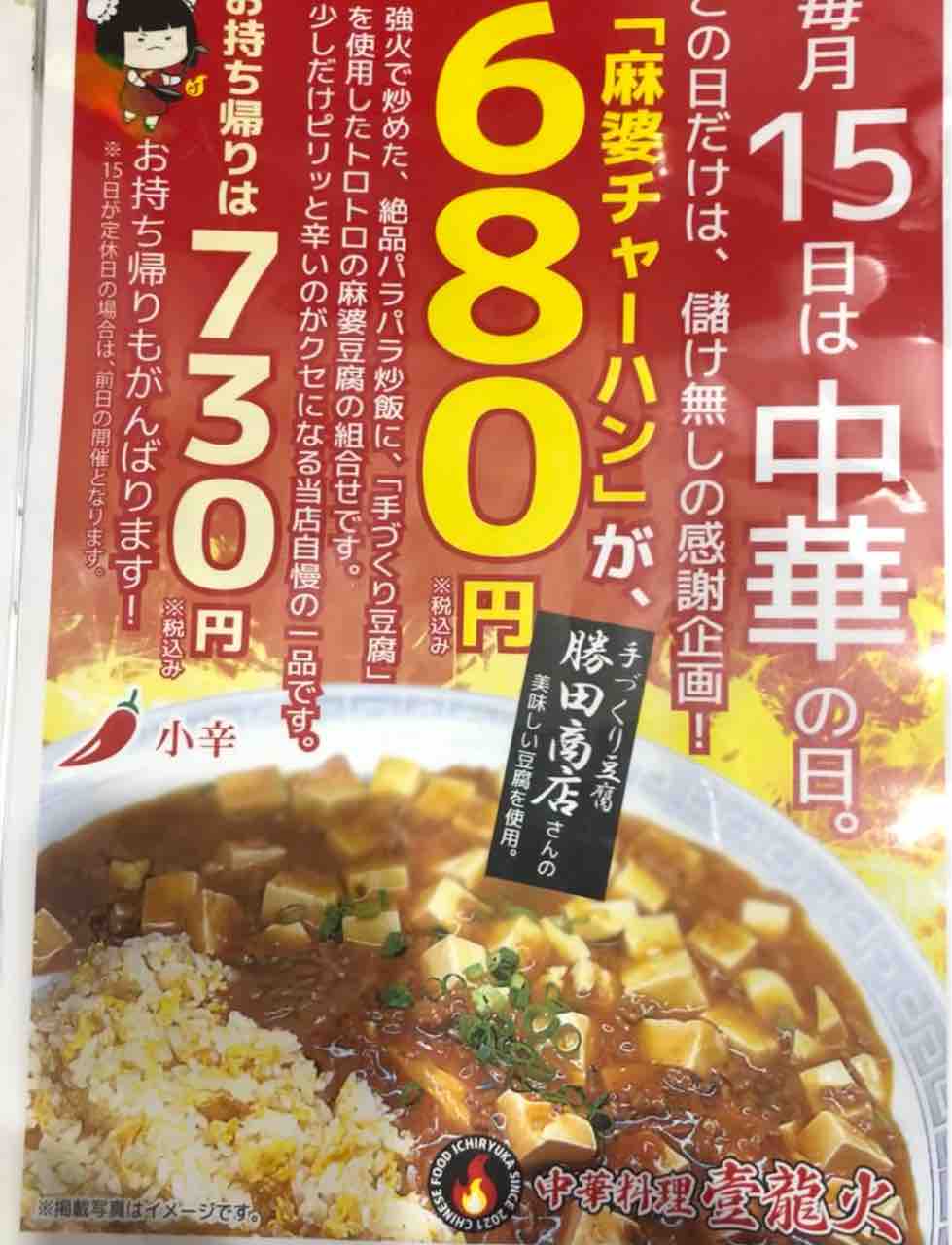 15日は麻婆チャーハンがお得だそうです。