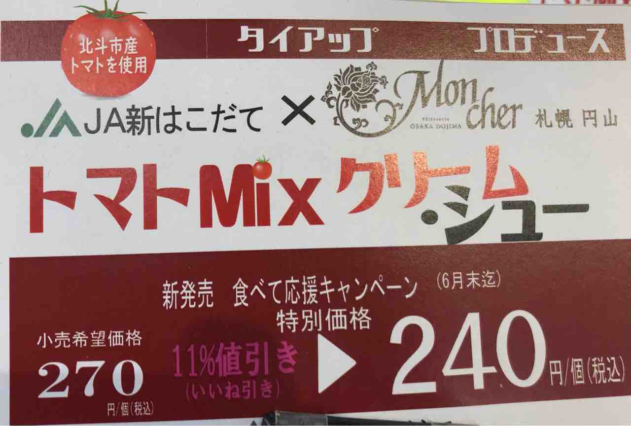 あと店内を回っている時に 少し前に新聞で見たトマトMIXクリームシュー (240円税込)が販売されており