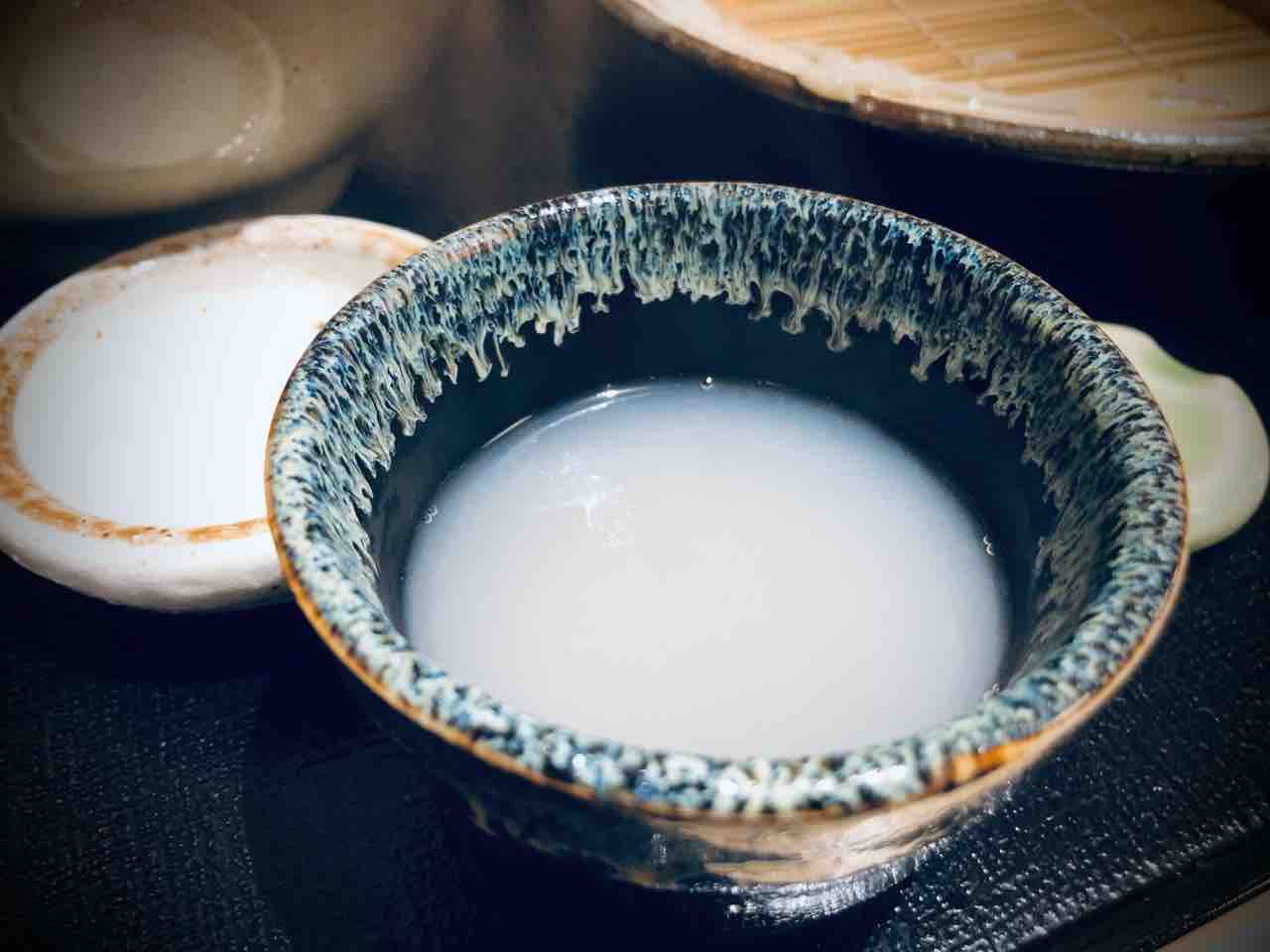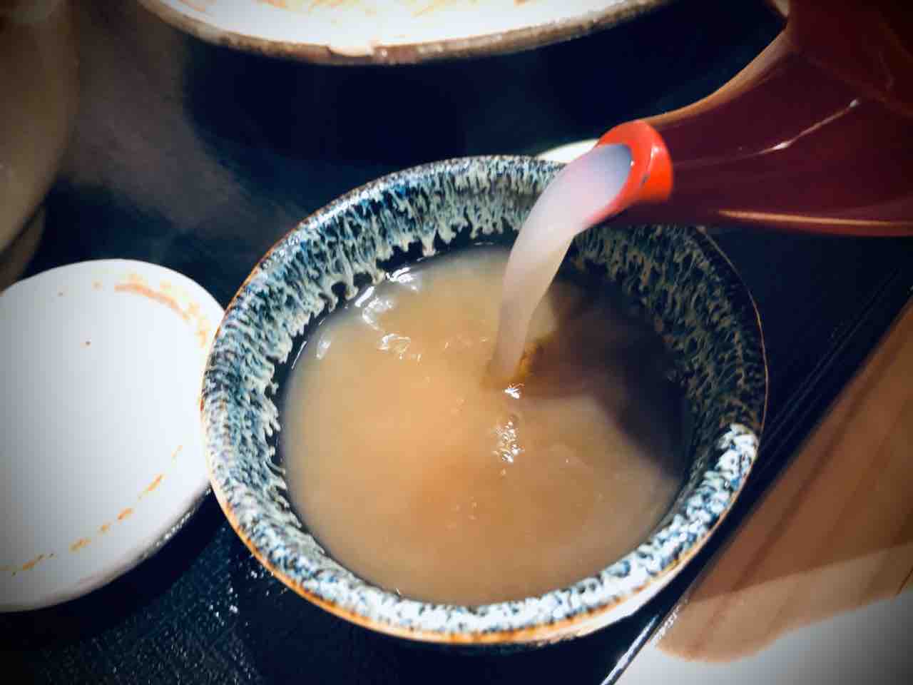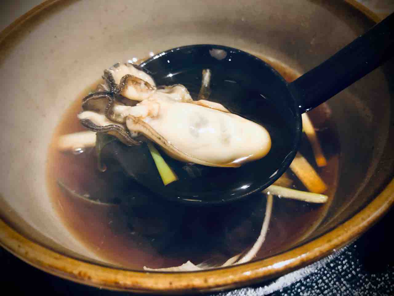 つけ汁です。中には長ネギと牡蠣が入っております。
