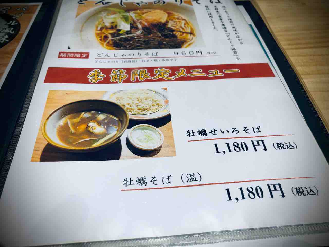 メニューは色々あるけれど 季節限定メニューの 牡蠣せいろ蕎麦(1,180円税込)が気になったのでオーダーしました。