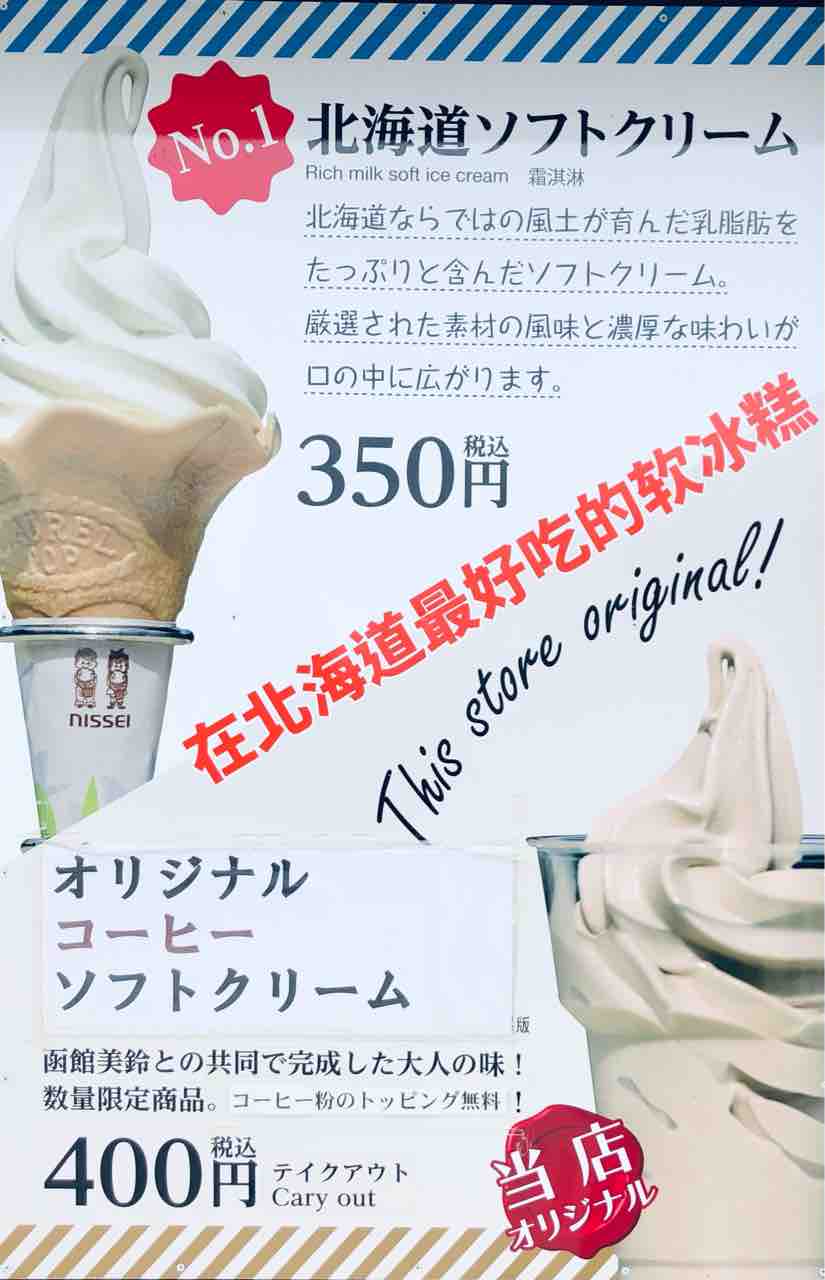 ソフトクリームのメニュー。