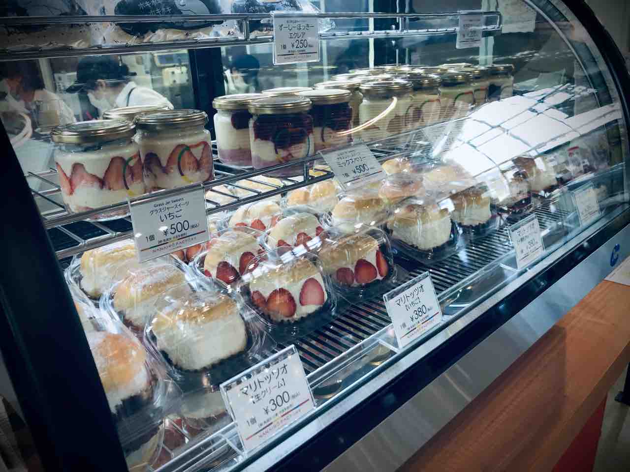 出来上がりまで ショーケースを見てみると美味しそうなスイーツがズラっと並んでおりました。
