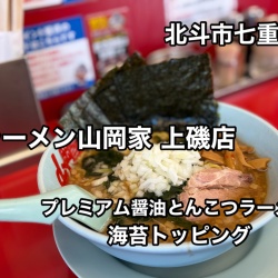 北斗市七重浜にあるラーメン店「ラーメン山岡家 上磯店」に伺い今回の期間限定メニュー プレミアム醤油とんこつラーメンをかたい、おおめ、こいめでキメてきました!