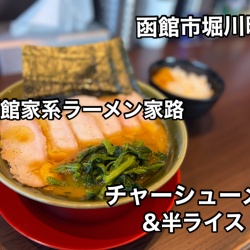 函館市堀川町にある「函館家系ラーメン家路」に伺いチャーシュー麺(硬い、多い、濃い)にライス小でキメてきました!