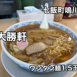常に列の出来る大人気のラーメン屋に行ってきた!七飯町鳴川にあるラーメン屋「大勝軒」に伺い ワンタン麺 1.5玉をキメてきました!