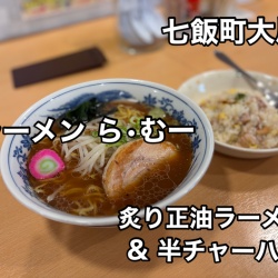 リーズナブルに食べられるラーメン店って最高だね!七飯町大川にある ラーメン店「ラーメン ら•むー」さんに伺い炙り正油ラーメン&半チャーハンをキメてきました!