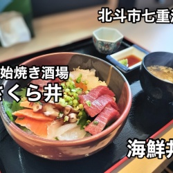 北斗市七重浜にある居酒屋「原始焼き酒場 さくら井」さんのランチに伺いまして海鮮丼をキメたらリーズナブルかつボリュームあって最高過ぎた!