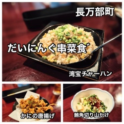 長万部町にある「だいにんぐ串菜食゛(くしなだ)」さんに伺い 噴火湾の湾宝ホタテが入った湾宝チャーハン、かに唐揚げ、鮪角切り山かけをキメてきました!