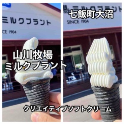 七飯町大沼町にある休日になると人が押し寄せる大人気の牧場「山川牧場」に伺い変な形のクリエイティブソフトクリームをキメてきました!