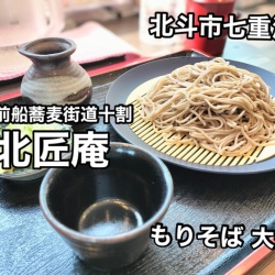 北斗市七重浜にある お蕎麦屋さん「北前船蕎麦街道十割 北匠庵」さんに伺い オンリーワンな焙煎蕎麦 香り引き立つ もりそば大盛りをキメてきました!