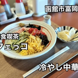 お盆を過ぎて幾分かは過ごしやすくなったけど暑い日にはやっぱコレだね!函館市富岡町にある「軽食喫茶カフェっコ」さんに伺い 冷やし中華をキメてきました!