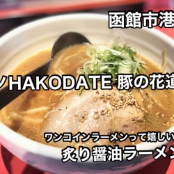 函館市港町のポールスターショッピングセンターの中にあるラーメン屋「港ノHAKODATE 豚の花道」さんに伺がい ワンコインラーメンの炙り醤油をキメてきました!