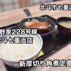 北斗市七重浜にある「吉野家 228号線北斗七重浜店」に伺い 新厚切り豚角煮定食をキメたら 吉野家市場最高にハマったかも!